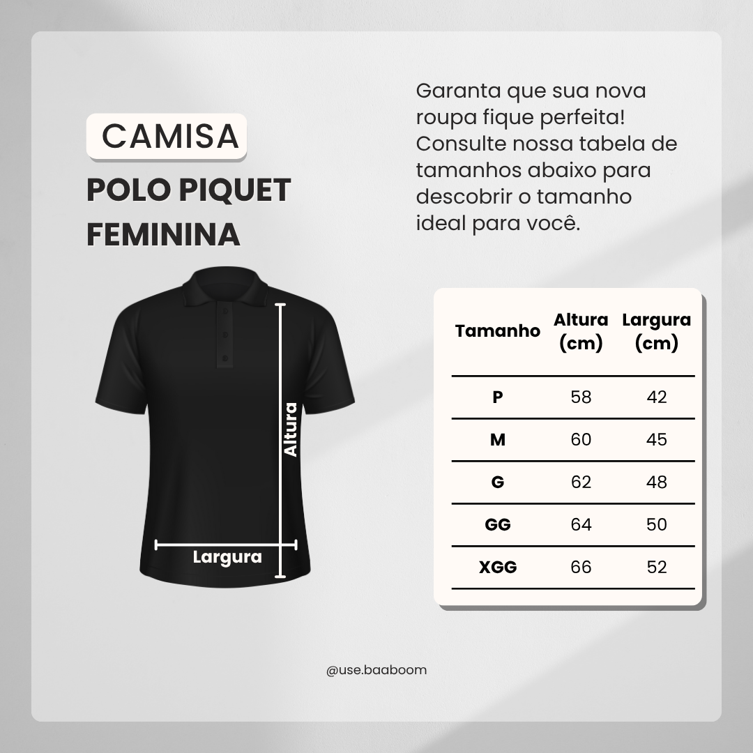 A Camisa Polo Piquet Feminina é a união perfeita entre sofisticação, conforto e estilo atemporal. Confeccionada em malha piquet de alta qualidade, ela oferece textura refinada, toque suave e excelente respirabilidade, garantindo conforto e elegância em qualquer ocasião.