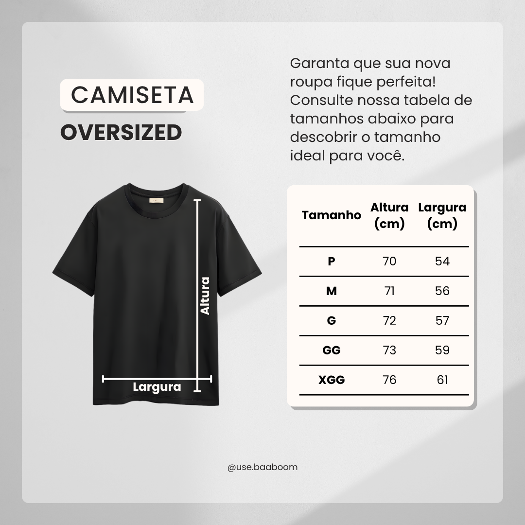 Seu corte oversized garante um visual moderno e urbano, com modelagem ampla que proporciona liberdade total de movimentos e conforto durante todo o dia. Ideal para compor looks casuais ou streetwear, combina com jeans, bermudas ou calças cargo, entregando versatilidade e atitude.